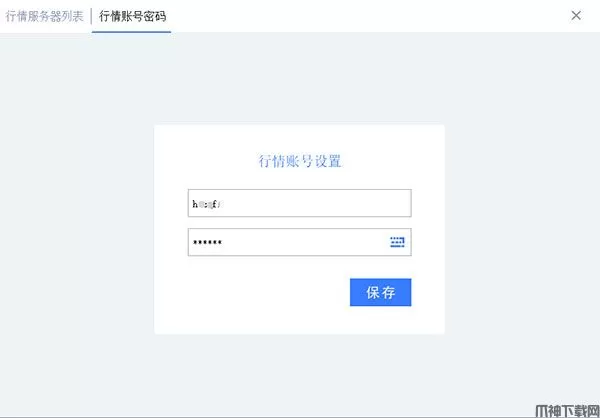 点击上侧【设置】按钮,点击【行情账号密码】标签,即可输入特殊行情账户号及密码,点击【保存】后,退回登录界面进行客户端登录即用特殊行情账号进行登录。