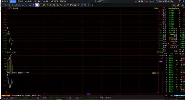 小窗口包含三个切换卡,分别是K线图,分时图和加权指数。联动状态下点击合约报价会自动关联到对应的K线走势和对应的期权加权指数图界面,如果是股票期货其他品种,灰显加权指数切换卡。