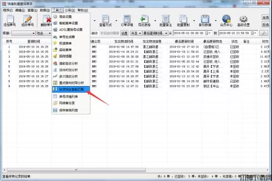 3、导入完成后,会自动查询物流信息,查询完成后,点“工具”中的“收货地址智能匹配”,如图: