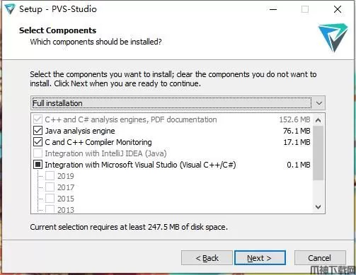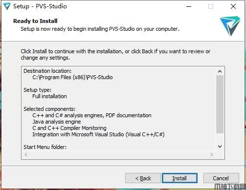 安装向导默认设置的软件默认安装路径为C:\Program Files (x86)\PVS-Studio
