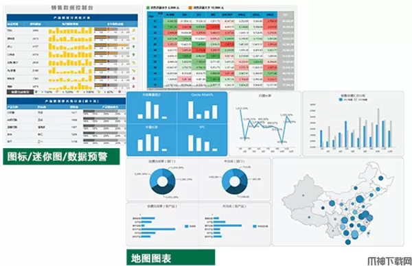 交互式地图、迷你图、信号灯、数据条、图标集等