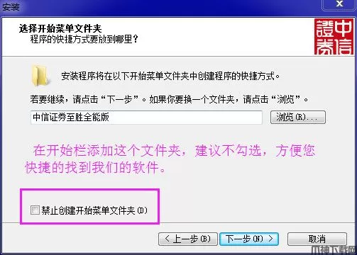 4、选择是否将程序的整个目录放在开始栏,方便您快速找到我们的软件的目录,如下图。