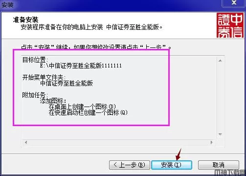 6、程序来到了安装栏,可以检查您之前的安装选择,有不满意地方可以回头去修改,没问题就点击安装。