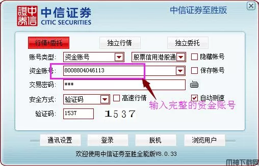 8、双击打开桌面快捷方式图标,显示系统登录界面,如下图所示。输入您的帐号和密码就可以进行网上交易操作了。