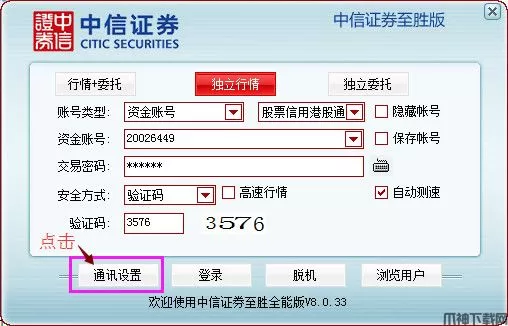 请点击确定按钮,并退出“通讯设置”界面。您就可以输入帐号登录到我们的服务器,查看实时行情、资讯以及买卖股票进行交易了。