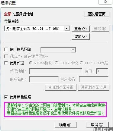 如果测试结果提示连接不到行情主站。您可能还需要进行下一步的设置。