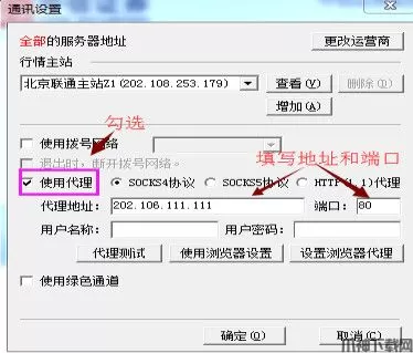 如果您正使用代理服务器上网,则也需要在“通讯设置”中对代理服务器进行设置。请按照下图所示设置代理服务器:
