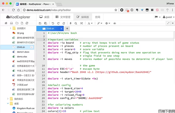 kodexplorer是一款开源的Web在线文件管理、代码编辑器,大家有没有想过在浏览器上对你的电脑资源进行管理呢,对于经常写代码的朋友来说,在各种编辑器与桌面之间来回切换是不是很麻烦呢。而这款kodexplorer可以说是别具一格,即可文件管理,又可以直接对代码进行编辑。而且kodexplorer提供了类windows经典用户界面,一整套在线文件管理、文件预览、编辑、上传下载、在线解压缩、音乐播放功能。让你直接在浏览器端实现web开发、源码文件预览、网站部署的同时拥有与本地操作一样方便、快捷,非常的实用哦,最关键的是如果你的宽带是公网IP,用FTP搭配KODExplorer,My Cloud就会成为你专属的、真正的、私人的云服务器。这样你在上面写代码,写程序和办公是绝对的安全的。而且是在kodexplorer网页上打开的,根本就不足用系统资源。本站提供的kodexplorer数据包安全无毒,没有任何的恶意插件,大家可以放心的下载体验哦!