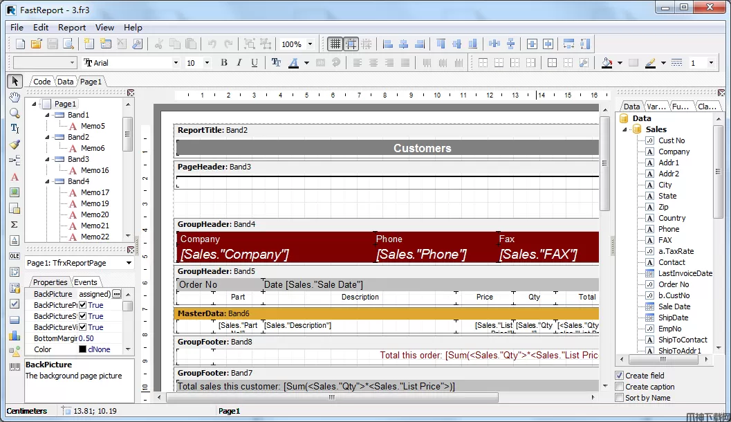 7、内建的Pascal-like宏语言使得用户无需在Delphi环境中就可以写出代码。它可以创建出使用其它工具所不能创建的报表。