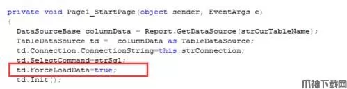 5、这时我们在获取数据表,并自定义绑定数据连接和过滤条件后,进行初始化之前就需要设置表格的ForceLoadData属性为true