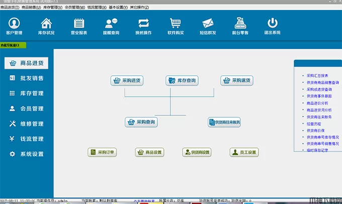 采购进货、库存查询、采购退货、采购查询、以及供应商往来账务