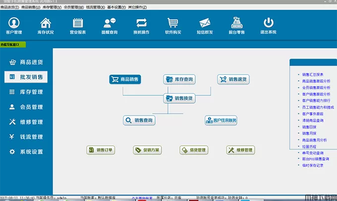 商品销售、库存查询、销售退货、销售换货、销售查询以及客户往来账户