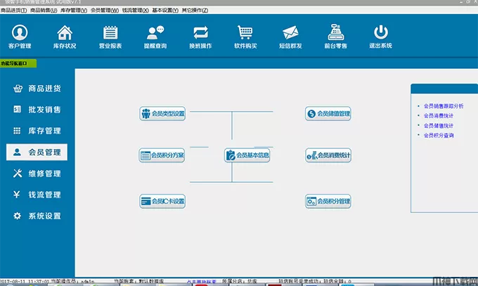 8、会员管理功能集折扣卡和储值卡为一体,支持会员信息的导入、导出