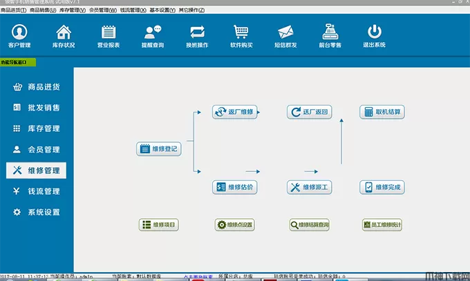 维修登记、退厂维修、维修估价、取机结算、维修完成