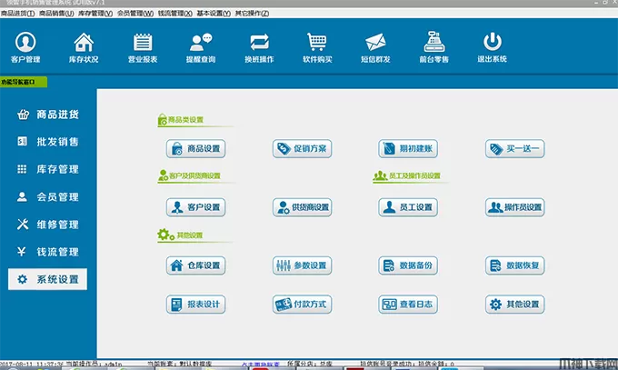 商品设置、促销方案、客户设置、供应商设置、员工设置、数据备份等等