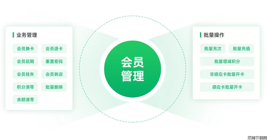 会员换卡、退卡、会员延期、会员挂失、会员转店、会员批量导入导出、会员批量开卡、批量充值充次、批量积分清零等