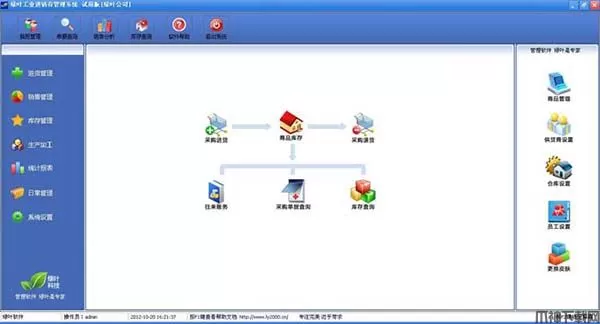 1、进货管理:进行商品采购入库,采购退货,进/退单据和当前库存查询,与供货商的往来帐务。