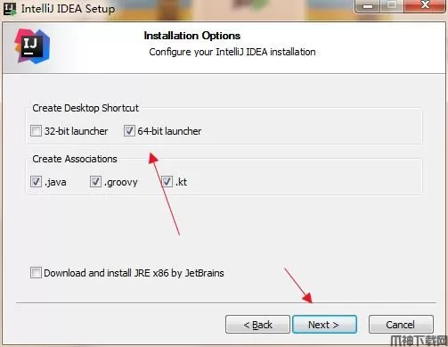 4、勾选创建IntelliJ IDEA 2018桌面快捷方式,32位和64位建议都勾选,关联文件可以自行选择,小编这里没有选;