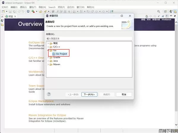 5、安装完成重启Eclipse,可以看到goeclipse出现了,用户可以使用了。
