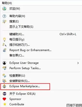1、打开帮助,在其中找到Eclipse Marketplace。