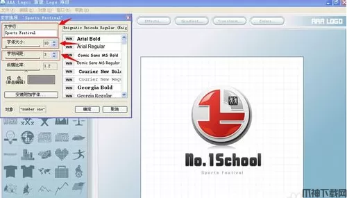 7、点Text,在文字行将-number one-改为Sports Festival,并将字体大小设为10, 字符间距设为3,然后确定;