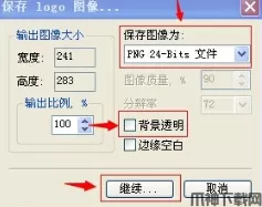 8、制作完毕,按文件,点保存LOGO图像,根据需要选择保存图像的类型,是否要求背景透明,然后点继续;