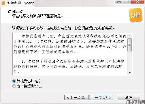 1、下载yaanp官方版安装包,解压后,双击exe程序,进入安装向导,单击下一步