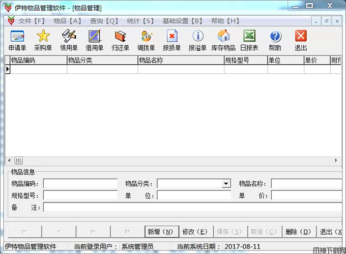 伊特物品管理软件是一款专业实用、功能强大的物品管理软件,作为一个领导,单位有多少物品,这些物品谁在用,是否浪费,是否借出后归还,作为一个仓库管理员,你的仓库是否好好归置了?是否有完整的物品档案,是否对物品进行分类了?等等一些列的繁杂琐事困扰着他们。伊特物品管理软件就能很好的解决上面出现的问题,对物品进行很好的归置,对物品进行档案录入,支持数据备份、数据恢复,不再丢失数据。强大的查询统计功能再也不用一个个翻一个个找,完全支持Excel导入导出,提供多种报表用户能够方便的查询分析等等,帮助您管理好企业的物品,管理好您的仓库,软件操作简单,使用方便,欢迎有需要的朋友下载体验!
