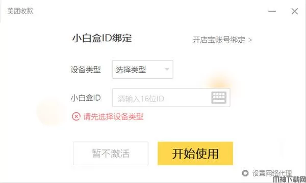 4、进行小白盒ID绑定,可选择开店宝绑定;