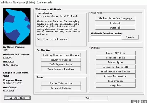 WinBatch电脑版是一款高档的编程语言,主要的作用是为用户的系统编写各种命令,有了这些命令用户能够更加轻松的让计算机自己运行起来,软件能够将复杂的、重复的连续动作转换为一个简单的程序,只需要一个快捷键就能够轻松执行一系列的动作。可以说,这款WinBatch电脑版让我们的用户不管是玩游戏,还是工作,只要是一些比较单调的操作,都可以通过软件制作成脚本,然后通过快捷键让计算机自己运行,计算,非常方便和好用,而且用户还可以通过学习这款编程语言来让自己的小程序变得更加高级,完成平常你完成不了的操作。有需要的用户不妨下载体验!