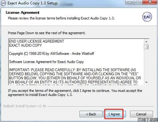 1、在本站下载压缩包,解压,双击打开“eac-1.3.exe”软件。这款软件安装向导是全英文的,但是安装完成之后会根据用户的操作系统将软件自动调整成中文,如果用户是英文操作系统,就需要手动设置到中文界面