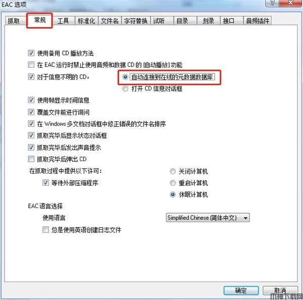 3、常规中选择“自动连接到在线的freedb数据库”,这样方便获得CD的相关信息比如曲目和演奏者名字