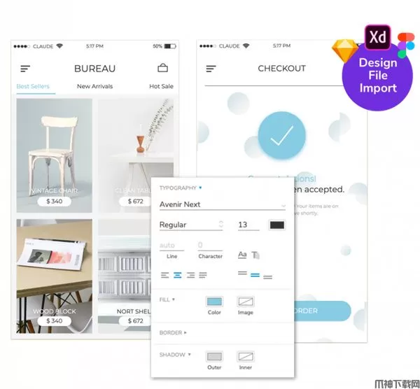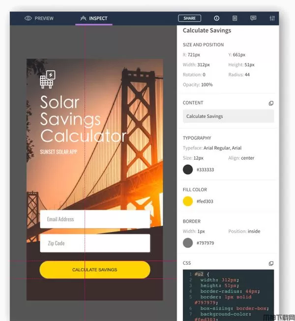 检查布局,获取CSS片段,然后下载资产。