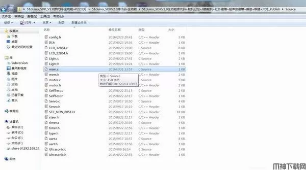 3、把生成的main.c文件拷贝到51duino_SDK_V2.0工程的Source文件夹中,替换原有的main.c文件。
