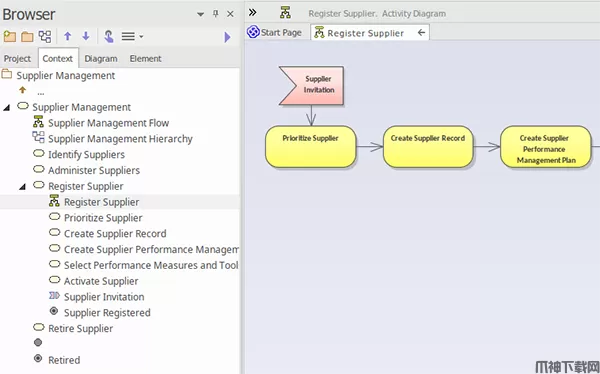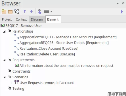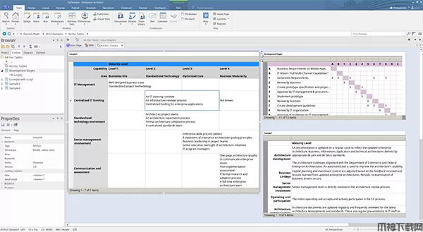 元素浏览器已从单独的停靠窗口移动,形成浏览器套件的一部分。 这允许用户快速查找和使用此窗口来驱动其模型的其他方面,如功能,任务,职责,讨论,评论等。