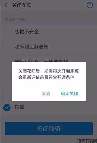 6、关闭后再次开通需要重新审核你的开通条件,所以关闭前一定要考虑周全。点击确认关闭即可。