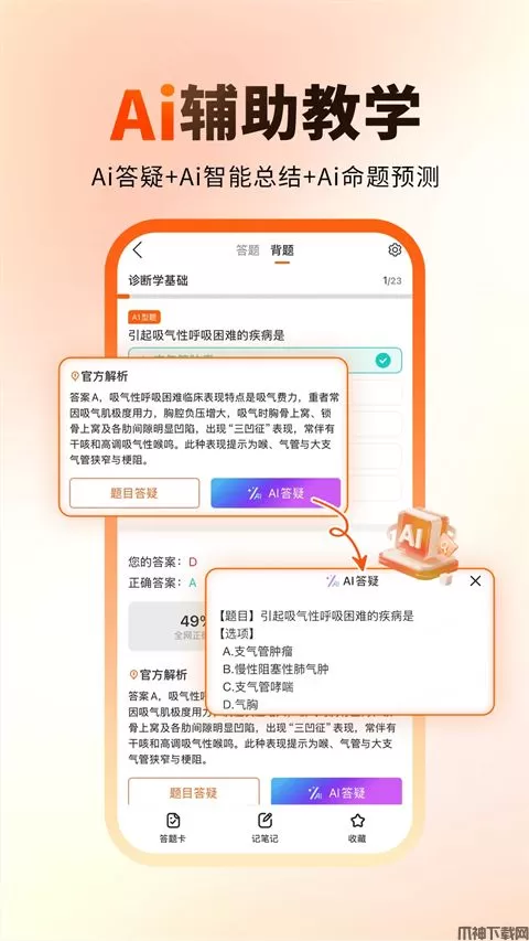 3、辅导答疑:在线名师答疑解惑,学习效率成倍提升。课后命题老师在线辅导押题,把握考点方向。据历年阿虎大数据统计,阿虎医考的考生8分钟就可以掌握一个考点、熟悉一个实操案例