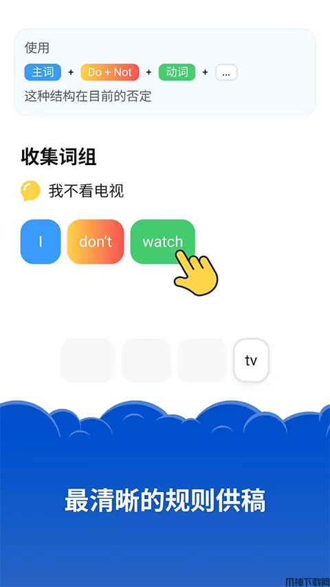 1、我们已经创建了适合初学者最容易的语法学习系统,你不需要理解英语语法和阅读教科书的所有错综复杂,我们打破了英语成原子,从那里只选择了最重要的信息,结构化它,并把它变成简单易懂的结构,用英语自修软件SIMPLER每个规则是一个简短的建设,这是立用实践和帮助即固定的问题
