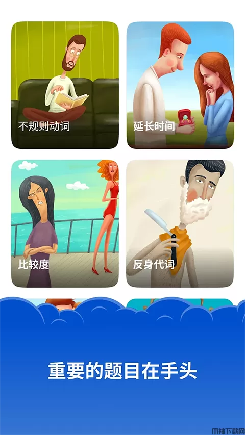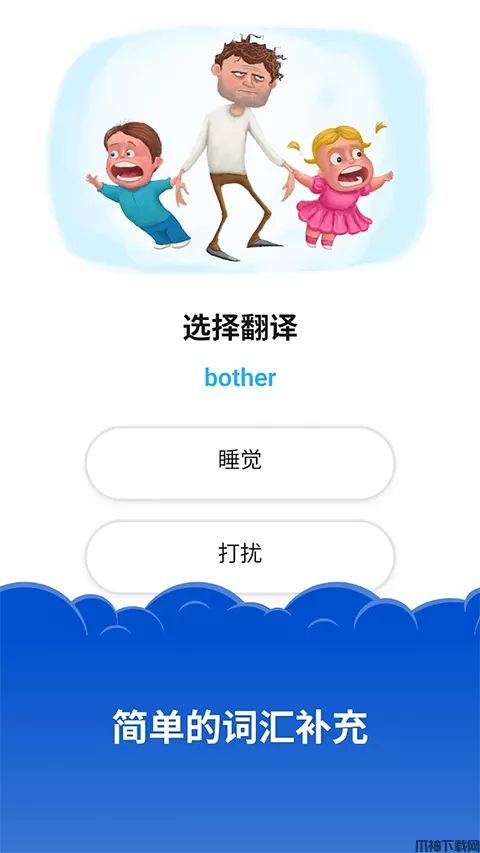 2、我们已经创建了一个容易而清晰的记忆英语单词系统,除了翻译之外,您还可以看到一个特殊的插图,显示未知单词的操作,以及一个文本关联,显示图片中的操作,并允许您创建额外的助记词连接.英语教程简单的组织单词的重复的时间间隔,这是由遗忘艾宾浩斯的曲线计算,有了我们,你的词汇量只会增长!