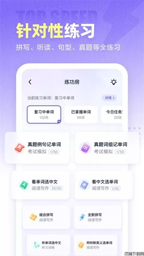 基于超级记忆原理,为单词提供正统、巧记、搞笑、笔记四种记忆模式,强大您的单词记忆网络。