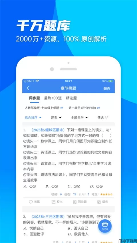 书包装满各种工具书,习题册,不堪重负?全学科海量题库一网打尽,集千名老师十二年心血积累而成,权威标准,每天持续更新5000题!精选各地学校考试卷,历年中考高考真题试卷,每道题目搭配考点分析答案详解!