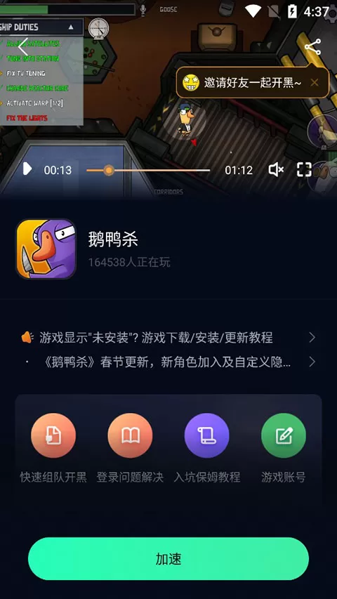 1、先打开软件,在游戏库中,找到鹅鸭杀。