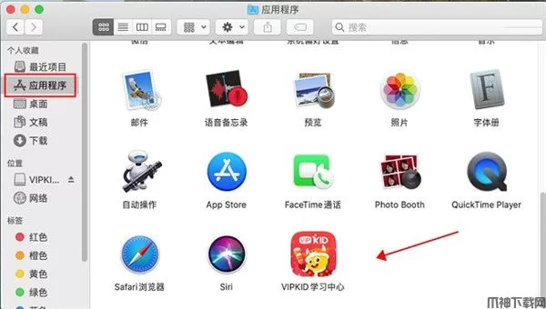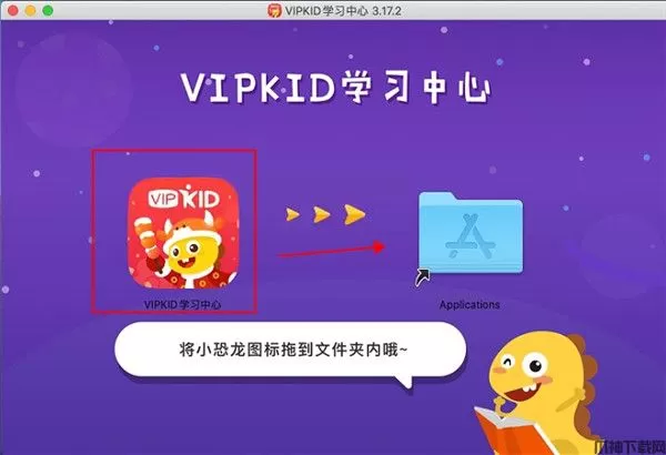 1、解压vipkidyy_97630.dmg,运行VIPKID程序后,将图标拖入文件夹内。