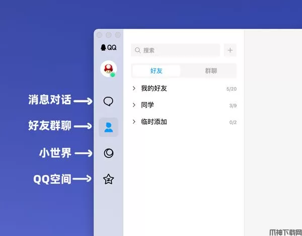 进入Mac版消息界面,在页面的左侧栏,如图,点击即可进入QQ空间。
