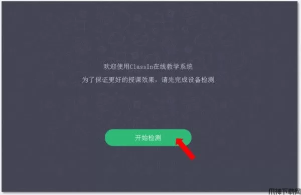 3、对于第一次安装使用ClassIn的用户,在登录教室前,ClassIn会帮助您对您的网络环境、音视频设备进行“体检”,以确保您能正常上课。请您点击“开始检测”,按照提示,进行检测。