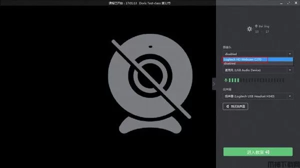 2、摄像头在ClassIn中被选择了禁止(disabled)的选项,在摄像头选项的下拉菜单中选择对应的摄像头设备即可。