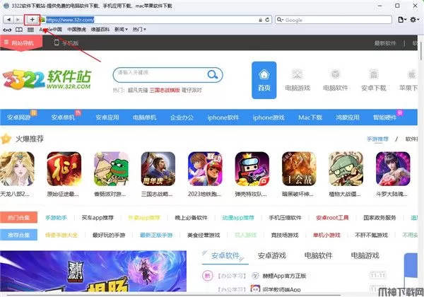 1、打开想要收藏的网页后,点击上方地址栏左侧的“+”按钮。