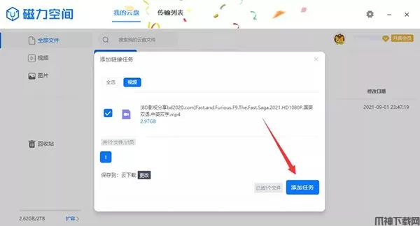 2、在用户下载安装登录账号之后,就可以直接复制需要下载的磁力链接,在后台运行磁力空间客户端的情况下,会自带识别到链接,确认直接进入云下载,基本就是秒完成。