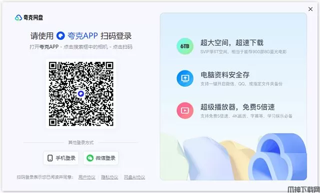 1、打开软件后,通过手机验证码,或者使用手机夸克浏览器app扫码即可登录夸克网盘;