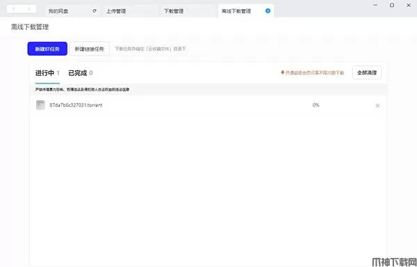 2、点击离线下载管理,选择新建链接或新建BT任务;